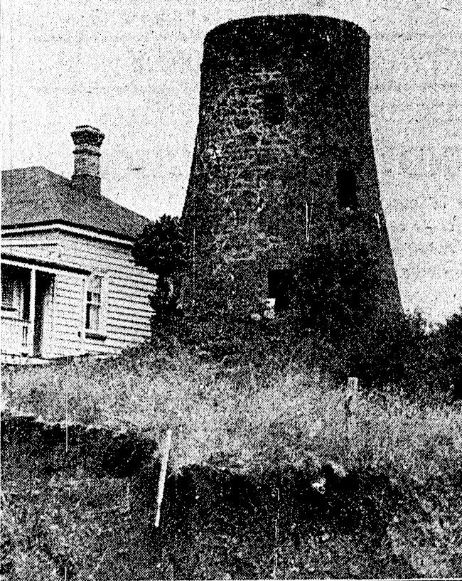 The ruins of the old windmill in St. Andrew's Road, Mount Eden, which may be demolished. The mill was built 75 years ago by the late Mr. J. Bycroft.