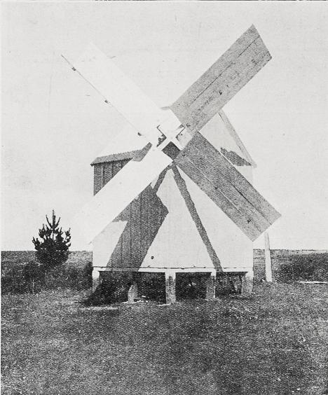 The sole record for this is a 1910 photo (presumably contemporary) from the Auckland Weekly News. The photo shows an apparently square wooden building, mounted on short piers to raise it above the ground. The building carries 4 planked sails, which are protruding from a corner of the building, rather than from a face of the building which would be more normal. There does not appear to be any obvious way in which the sails or the building could be aligned with the wind direction. The photo is cationed "A windmill for farm work at Takapuna, Auckland."