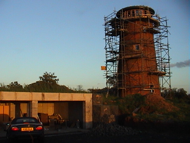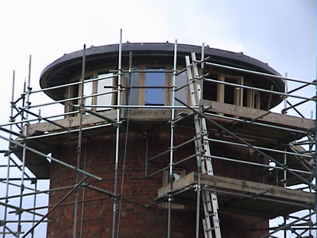 Scaffolded mill tower at sunset, 26/10/2006 © Bob Larbey