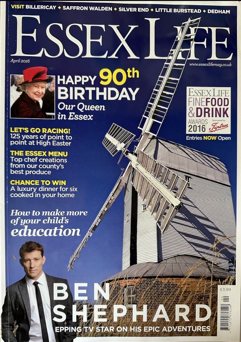 Essex Life magazine cover showing Aythorpe Roding post mill, issue April 2016