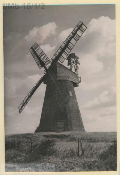 tower millPhotos: (1) Farries 3 (a) disused with sails, 1934 (2) D W Smith (a) w/o (3) Wailes (TEW) (a) w/o (4) Wailes (EW) (a) great spur wheel (5) NMR (WC) (a-c) derelict with 2 sails (6) NMR (a) derelict with 4 sails (b-c) ditto, August 1932 (d) ditto, Sept 1935 (e) ditto, n.d. (f) derelict with 2 sails (magazine cutting) (g) as house-converted in 1970s, with cap and sails restored (magazine cutting) (7) UOK (MC) (a) derelict with 4 sails, 1932 (b) ditto, August 1932 (c) ditto, Sept 1934 (d-e) ditto, May 1936 (f-h) ditto, March 1941 (i-j) ditto, May 1942 (k) detail of fan, May 1942 (8) ERO (a-g) disused with 4 sails (h) derelict with 2 sails, 1950 (i) w/o (9) Col.l (a-c) w/o (except for some missing shutters) (10) TC (a) w/o, 1919 (11) Wailes (ASBOWAW) (a) w/o, with two men working on sails (12) Hopkins (a) w/o (13) ECC (DEW) (a) as house-converted (14) Turpin (a-b) as house-converted (15) Vince 1977 (a) as house-converted (16) ERO (FC) (a-b) w/o (b) w/o: close-up of cap and fan (c) w/o, mid-distance (d) w/o, with some shutters missing, 1930 (e) w/o, 1924 (f-g) w/o with men attending to sails (h) w/o, apart from shutters in disarray; silhouette at night, c1936 (i) governor in Bardfield Cottage Museum, 1970 (j) as house-converted, March 1959 (k) close-up of cap, fan and derelict sails, 1936 (l) as house-converted (from property section of Country Life Supplement, 25th December 1980) (m) rear view of cap, fanstage and winding gear, May 1942 (n-o) disused with four sails (p-q) derelict with four sails (r) derelict with four sails, May 1942 (s) disused with four sails, 1935 (t) disused with four sails, September 1934 (u) disused with four sails, May 1936 (v) disused with four sails, 1936 (w) disused with four sails, c1938 (x) rear view of cap, fanstage, fan and winding gear (y) under repairs with sails off and man standing on scaffolding beside poll end (close-up view with nothing else of mill visible) (z) great spur wheel (aa) one pair of stones (ab) pulley (ac) governors and tentering gear (ad) new cap roof under construction (on ground?) with windshaft and brakewheel inside