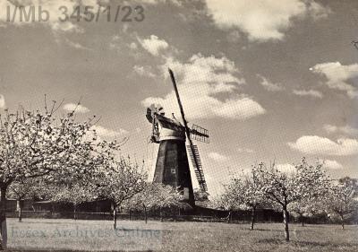 including photos of Birch post mill, Tiptree tower mill, Terling smock mill, and Brightlingsea post mill being dismantled in 1913