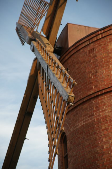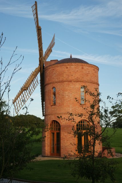 First brought to my attention via a photo on Geograph taken in Sept 2010. Google Earth historical imagery shows that foundations look to have been present in May 2006, with a hexagonal white skeleton framework constructed in 2007. The outer appearance is brick covered, with a shape reminiscent of Chesterton Windmill. The sails have been constructed using traditional millwrighting techniques, (with a rather unconventional varnished finish) though the poll end to the windshaft appears unconventional. Millwrights IJP performed the millwrighting work on the project.