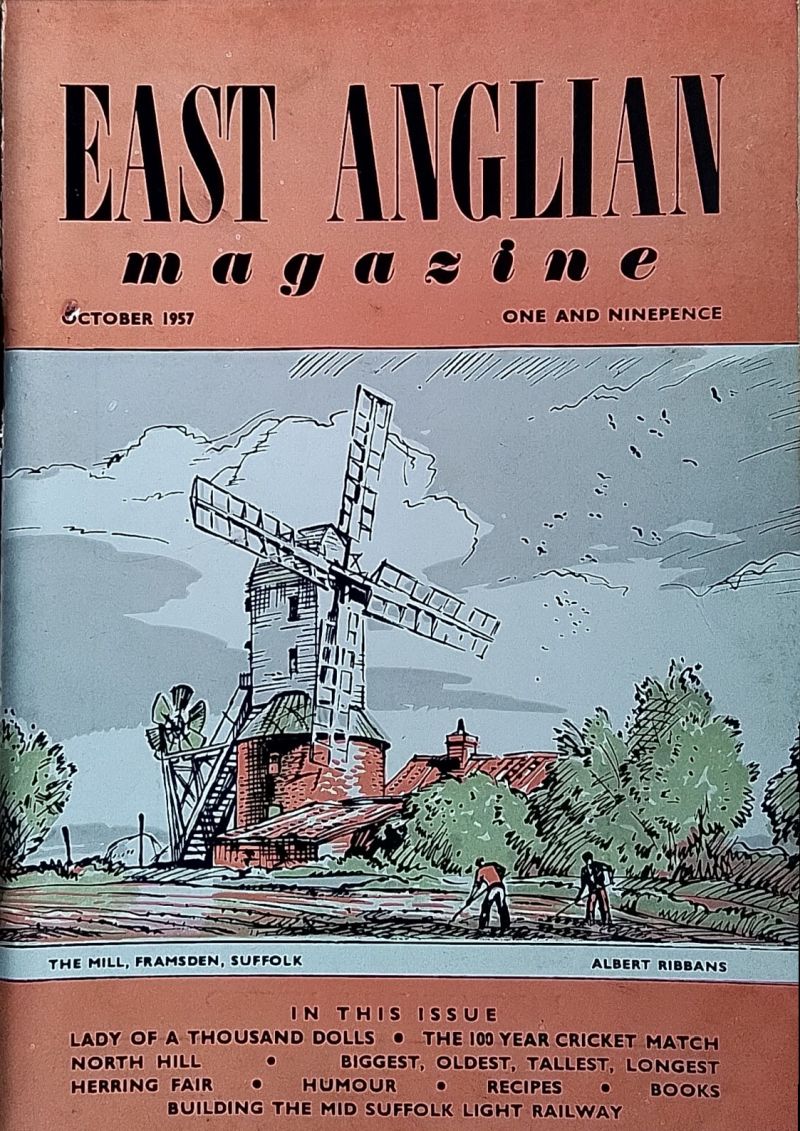East Anglian Magazine cover showing the post mill at Framsden, issue Oct 1957