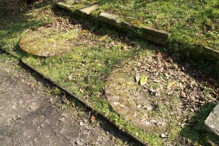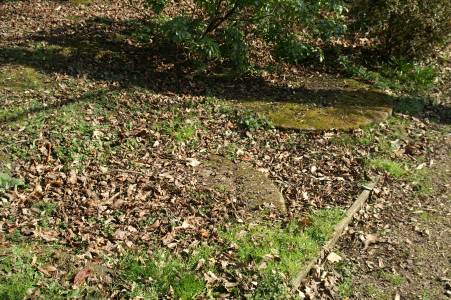 The millstones have generally been placed as paving slabs at junctions in the paved path to the south of the garden. They all appear to be
