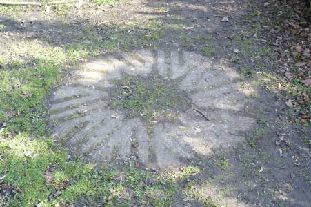 3ft stone, with approx 9 inch 8 pointed star centre hole, worn dressing pattern with 9 segments (included as part of the path)
