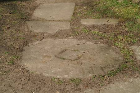 3ft stone, with 8 inch square hole, worn and indistinct dressing pattern (included as the eastern most extent of the path)